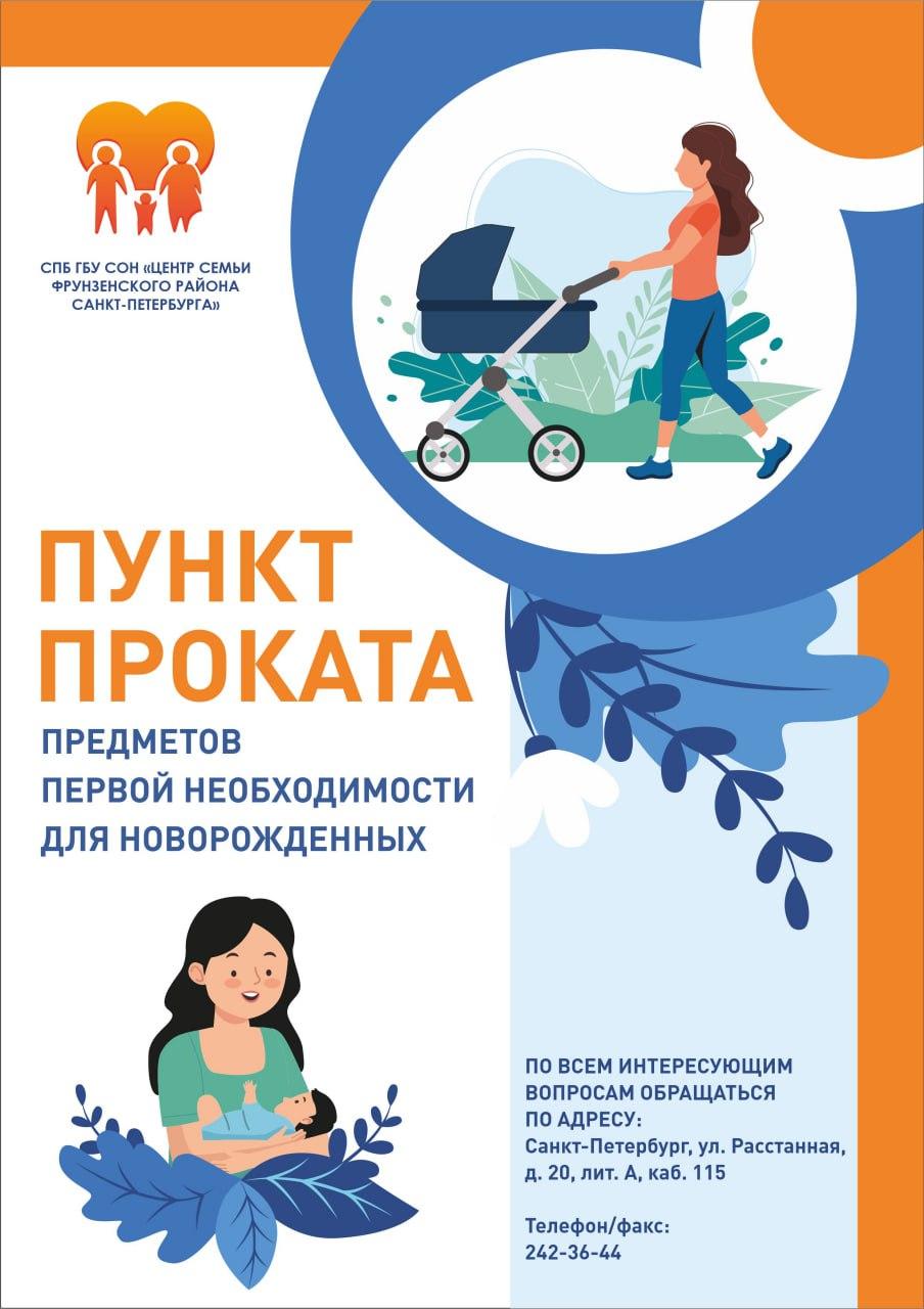 Во Фрунзенском районе на базе Санкт-Петербургского государственного бюджетного учреждения социального обслуживания населения «Центр социальной помощи семье и детям Фрунзенского района Санкт-Петербурга» (далее - «Центр семьи»)Пункт проката для новорожденных.Услуги пункта проката предоставляются на...
